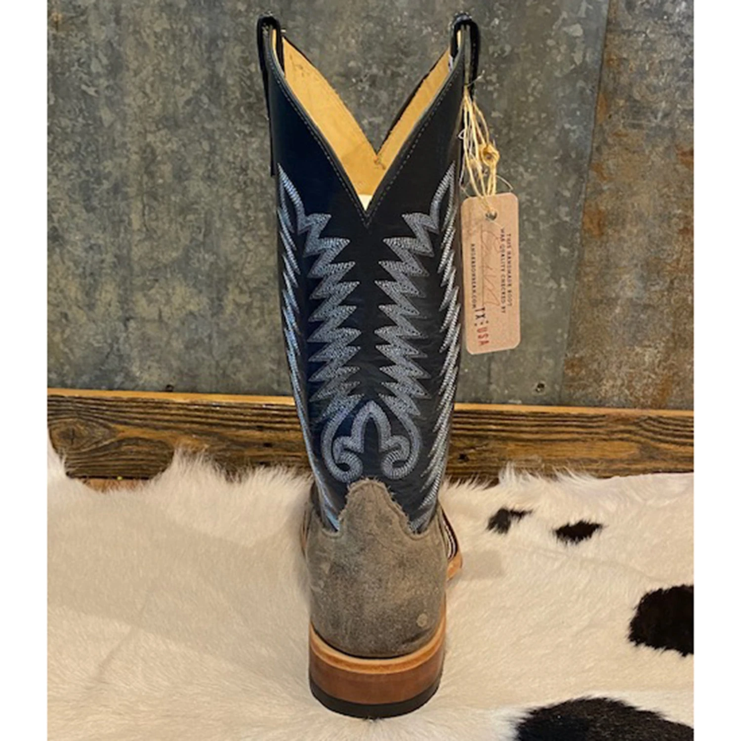 A stunning pair of Grey Waxy Kudu Boots from Anderson Bean! These boots feature beautiful regal blue top with light and baby blue stitching. These boots are more than just sharp; they are tough! Kudu is such a special leather, it’s very durable and ages amazingly!