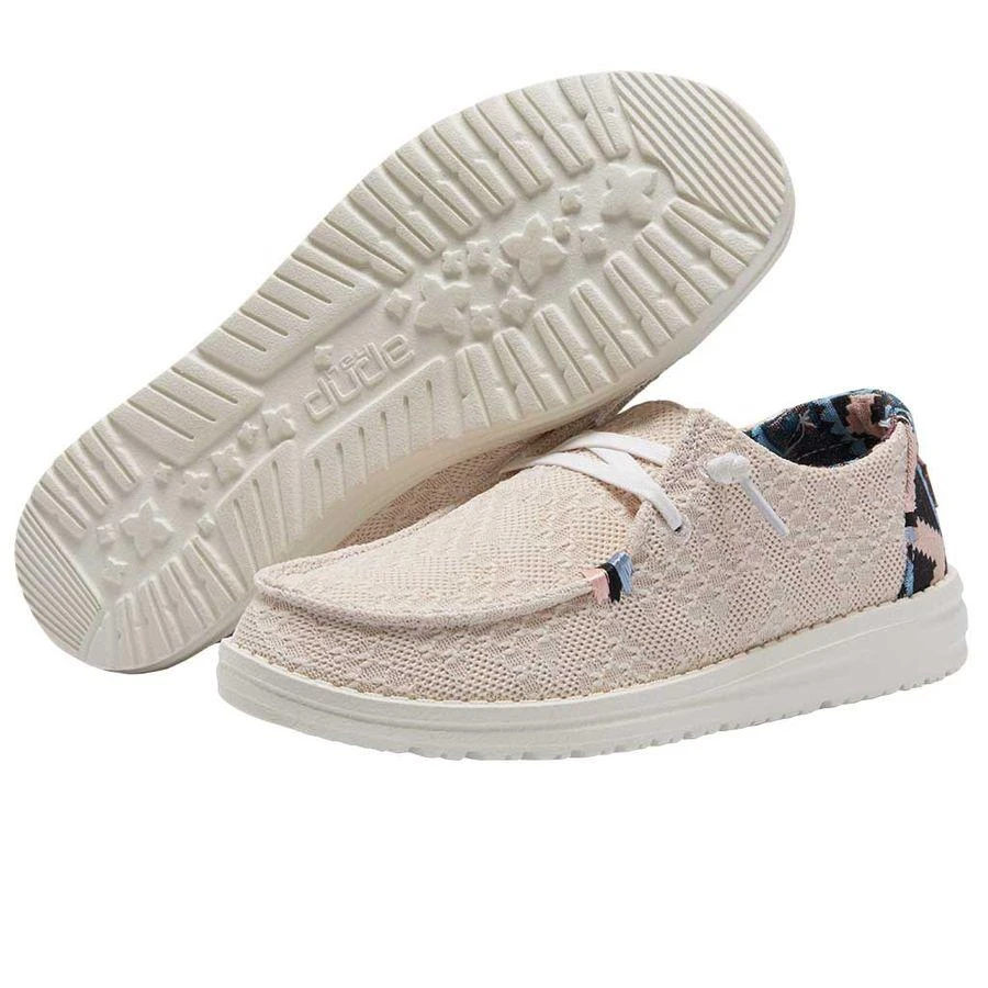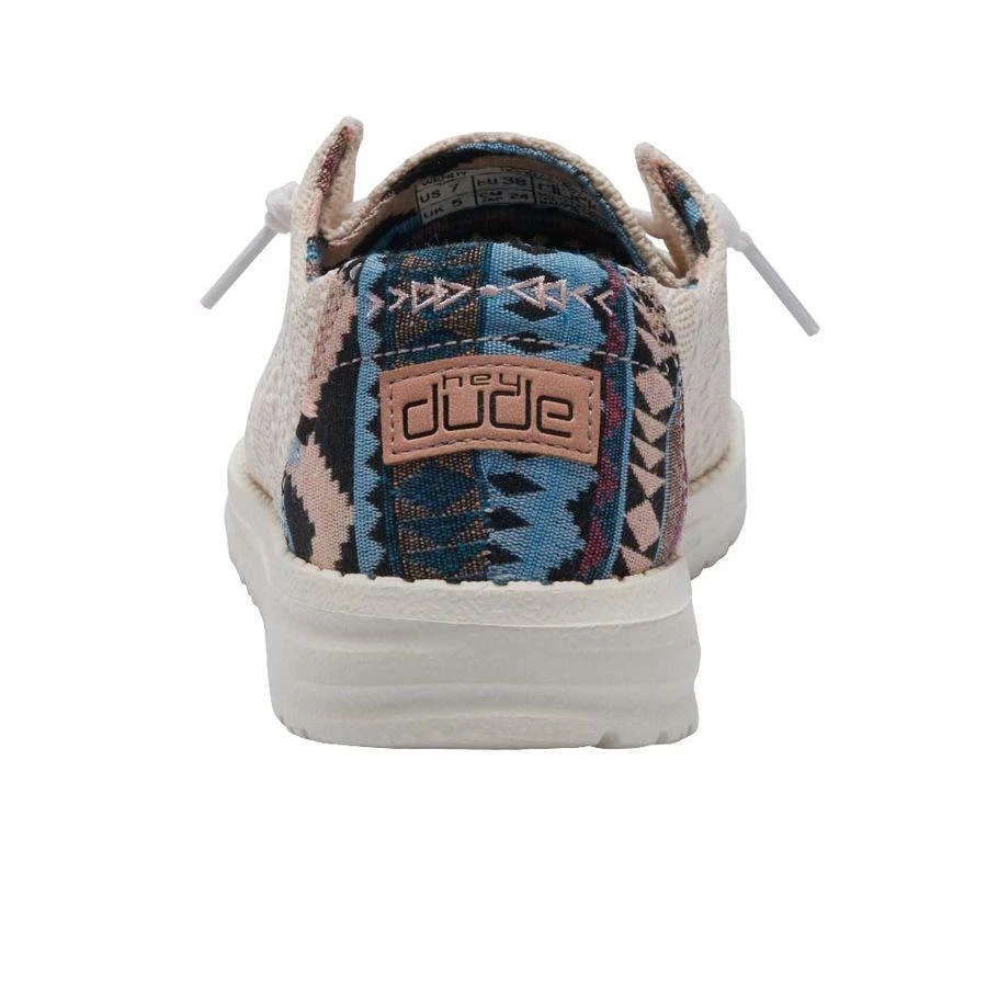 A little mojo for your boho Aztec Pink Hey Dude. Washed denim, crocheted details, embroidery and hand-stitching come together in a festival-ready style. With easy-on elastic laces and patented our UltraLIGHT EVA outsole, the Wendy Boho keeps everything footloose and stress-free.