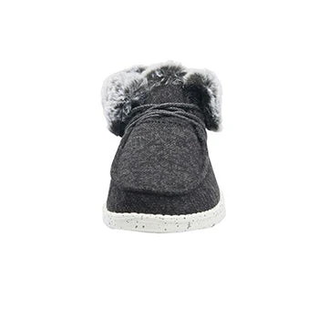 Check these out! They finally are here. These are the black high top shoes with the fur lining inside. They for sure will keep your feet warm on those cold/chilly nights. If you wear a half size, we suggest choosing the next up.
