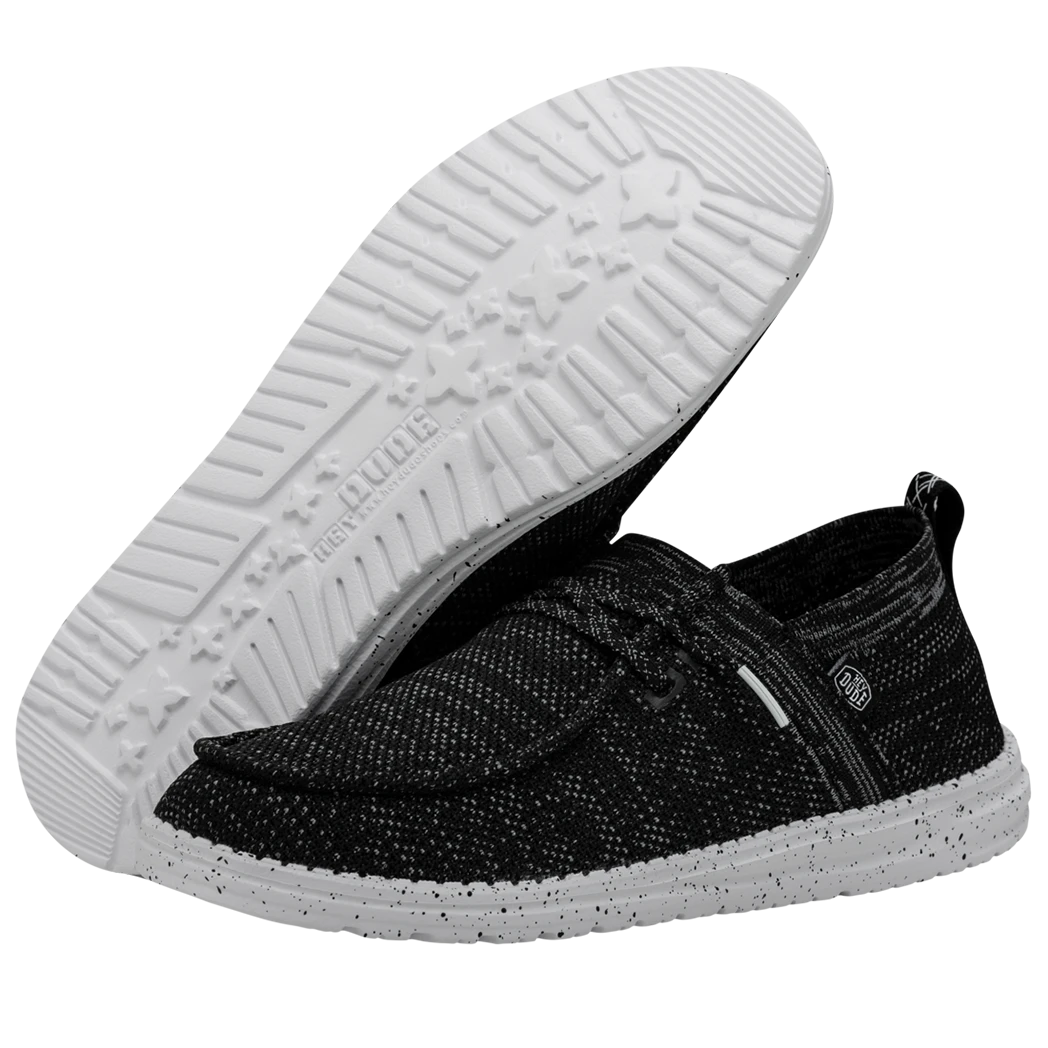 They Hey Dude Wally Halo Jet, Utilizes recycled fibers, this shoe gives you a soft and breathable feel with all day comfort. The Halo Jet features the easy-on system with cotton laces and an ultralight outsole. Great for the lake or beach these shoes dry out fast and keep a sock like fit to your foot!