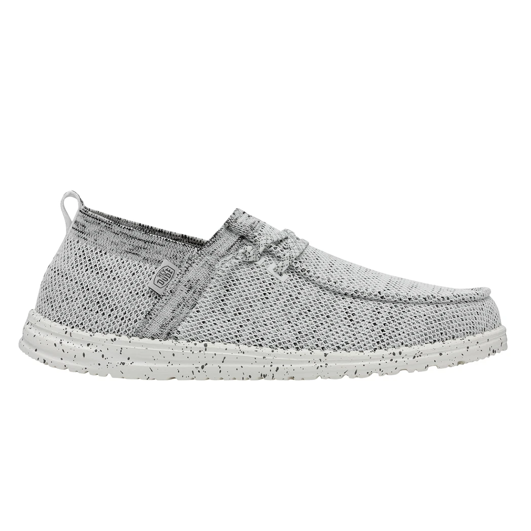 They Hey Dude Wally Halo Stone White shoe, utilizes recycled fibers, to give you a soft and breathable feel with all day comfort. The Halo features the easy-on system with cotton laces and an ultralight outsole. Great for the lake or beach these shoes dry out fast and keep a sock like fit to your foot!