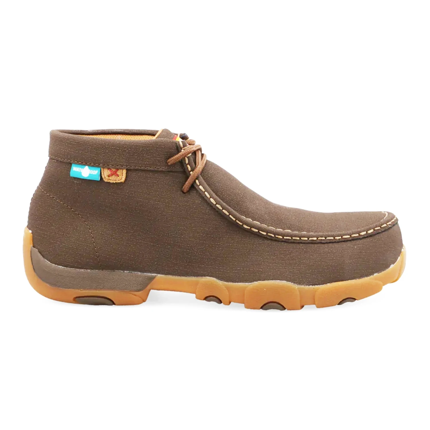 Twisted X Men’s Waterproof Nano Safety Toe Work Chukka Driving Moc is handcrafted with duraTWX® hybrid performance leather designed to perform in extreme environments. It is breathable, water resistant, anti-abrasive and anti-corrosive. This shoe is also designed with a waterproof lining. Electrical Hazard rated oil and slip resistant driving moc outsole combine to produce one of the most comfortable ankle-high casual shoes you can find.